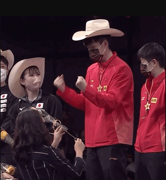不难看出早田希娜是把王楚钦当成模板了,其实这也非常正常,王楚钦是新生代球员中的佼佼者,已经取得了很不错的成绩,国乒现在更是把王楚钦当成接班人进行培养,所以早田希娜看上王楚钦也很正常,因为王楚钦确实很优秀。值得一提的是,在休斯顿世乒赛混双项目的颁奖仪式中,王楚钦和孙颖莎站上了冠军领奖台,这时王楚钦接过帽子,戴在了自己的头上,身旁的早田希娜立刻就露出了笑容,虽然戴着口罩,但明显可以看出早田希娜对王楚钦的仰慕。