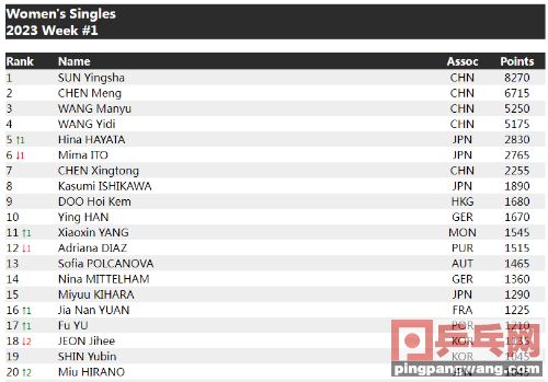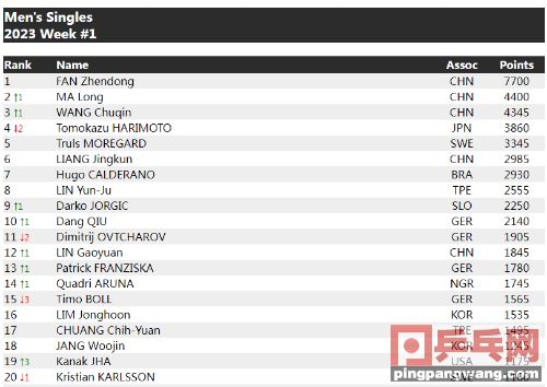 2023年首周排名出炉!马龙王楚钦受益,张本智和伊藤美诚齐下降,孙颖莎成最大赢家