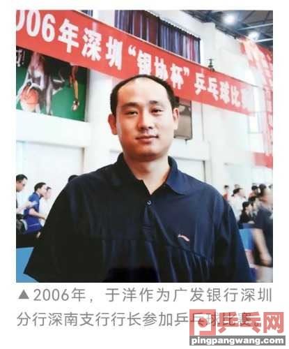 于洋是平安银行东莞分行的党委书记和行长,也是中国平安集团任命的东莞地区统管党委书记,分管着东莞 11 家平安金融机构的党建工作。他不想丢脸的乒乓人身份,要追溯到遥远的30年前,那时候他是八一乒乓球队一名普普通通的队员。
