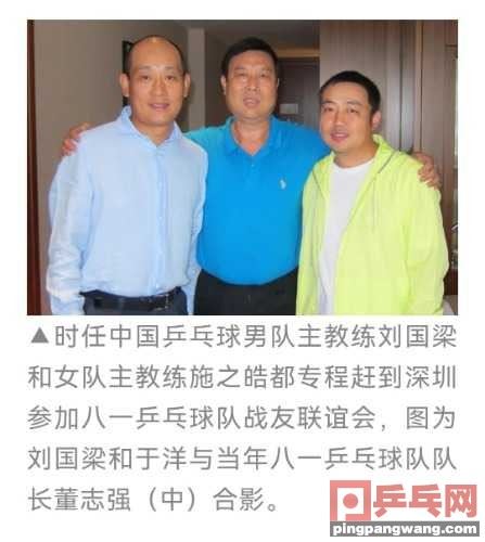 成为河北队最小的队员之后,每年征战全国比赛,随和、懂事、大方的于洋交了不少其他球队的朋友,八一队的朱震宇和刘国梁就是他格外要好的兄弟。在这两位好友的推荐下,于洋1989年进入了八一队?!鞍艘欢拥亩厩慷映ず椭苊绺塘非鬃缘教粕浇游胰胛?,还有主教练王雪昆,他们都给予了我很大的帮助,但是我的成绩一直没能有太大突破。”于洋在这里看到了自己和“真正好苗子”之间的差距,4年后,他决定转业。初入金融圈只求“鱼目混珠”上世纪90年代,退役乒乓球运动员最流行的出路是去国外打球,但于洋选了另一条路。