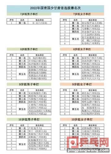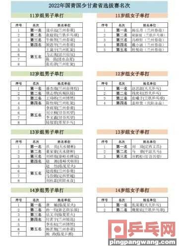 今天给大家说说关于国青国少集训队(第三期)甘肃省选拔赛落幕(国青国少集训队的内容,国青国少集训队(第三期)甘肃省选拔赛落幕乒乓世界 2023-01-05 17:20 发表于北京2023年元月1日上午,2022年中国乒协国家青少集训队、国家 ,下面我们来看看本文究竟说了些什么,有没有对您有点帮助。