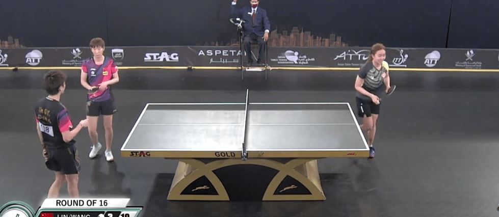 第一局和第二局基本上都在沙头组合的控制之下。他们以11:7和11:8获胜。第三局,冯耀恩和王心如开始反击,发球也有所变化。沙头在回应中犯了几个错误。冯耀恩和王馨茹分别以11-7和11-9的比分连得两局。