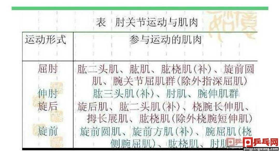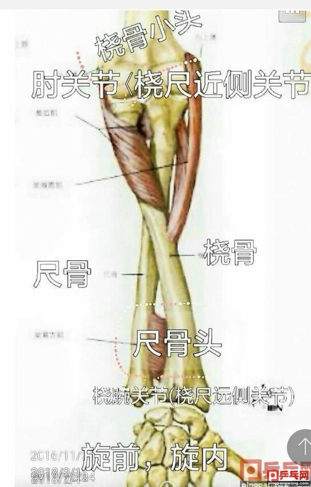 前臂桡尺上,下联合关节前臂的桡尺上下联合关节属转轴关节,运动时桡尺骨交叉旋前,反向运动称旋后。乒乓运动人生xuejiazl.org运动中,板形之调节,运动人生xuejiazl.org摩擦角之变化,击球之打摩,手指顶拨,运动人生xuejiazl.org旋擦,臂腕之转动,前臂的旋收均与此关节有关。 此关节是人运动人生www.wgqpnmx.cn体速度最快的转轴关节,发球,击球,暴挑,暴拧应充分利用此关节加速杠旋击球。 懂得此关节合理用力对于提高击球质量及命中率会有极大帮助。