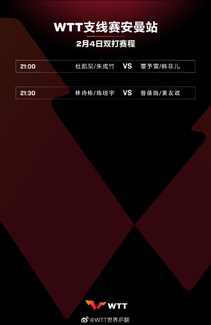 今天给大家说说关于WTT安曼支线赛2月4日(今日)赛程的内容,,下面我们来看看本文究竟说了些什么,有没有对您有点帮助。
