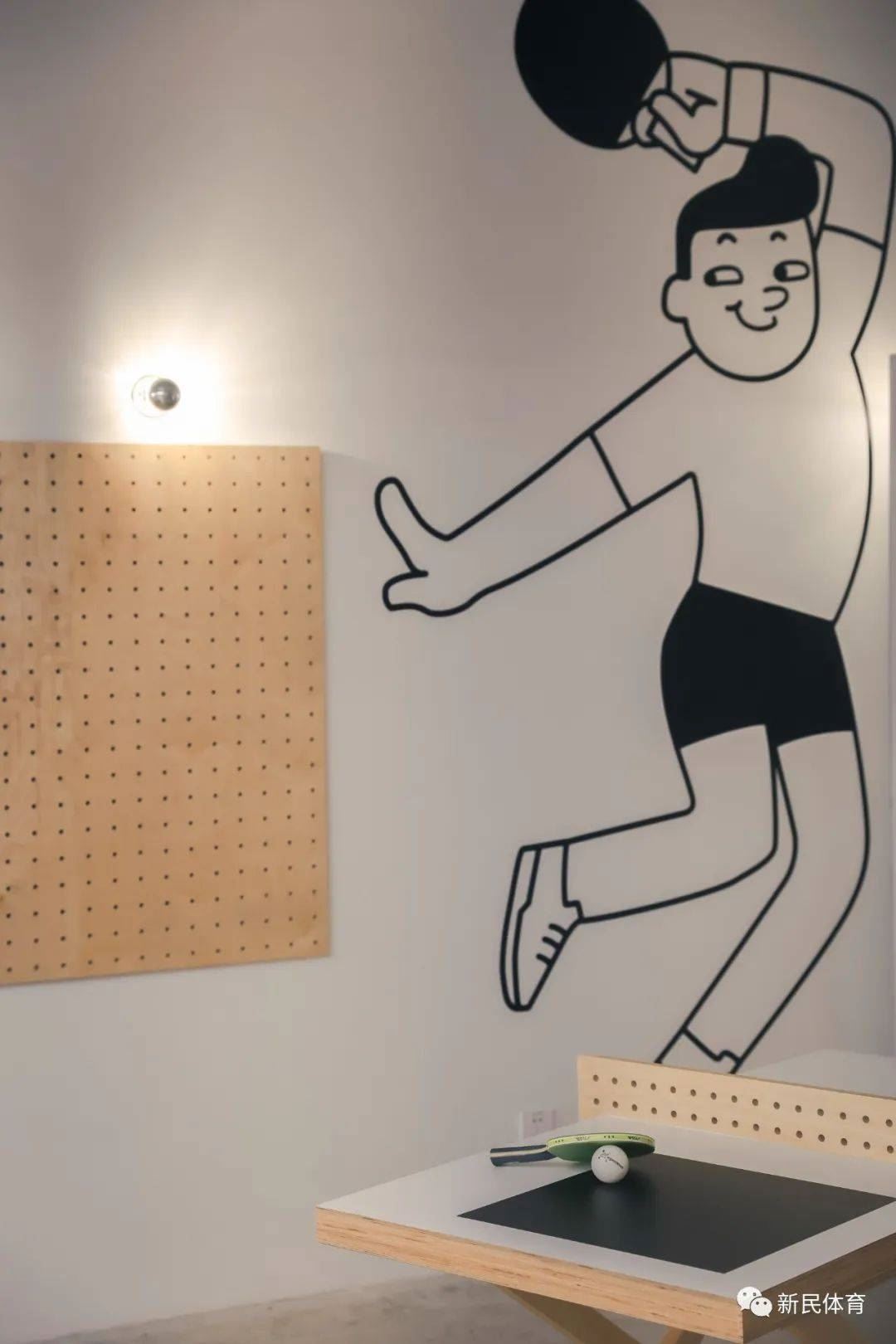 最令太太姚彦自豪的,则是亲手布置的咖啡休闲区??Х仁乔蚬莸牧硪桓鲋魈?,因此有了社交属性。平常就算不打球,也能来这里办公、喝一杯咖啡。咖啡桌本身就是一张异形球台,台面上画有抽象的乒乓图案,颇为吸睛。坐下来喝杯咖啡,透过一块明亮的落地玻璃,能看到馆里打球的场景?!拔易约捍蚯蚴本拖不队泄壑诘母芯?,我相信很多人都是这么想的?!毙黻拷馐退?,“透过这面玻璃,无论对于观众还是运动者来说,都是非常享受的。”