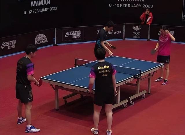 混双1/4决赛非常精彩。林诗栋/奎曼3-0战胜何俊杰/李昊晴。