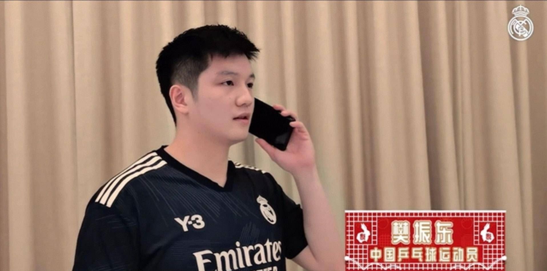 // 樊振东瘦了!小胖穿皇马1号签名球衣亮相,表情特别可爱和 //