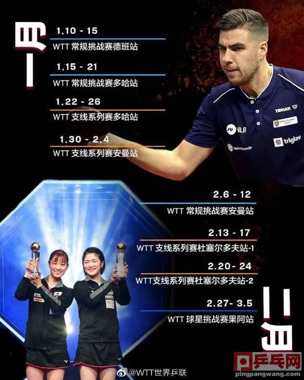 新年伊始,WTT世界乒联公布2023赛季1-7月的赛事日历,该赛历包括WTT系列赛和WTT支线赛事。