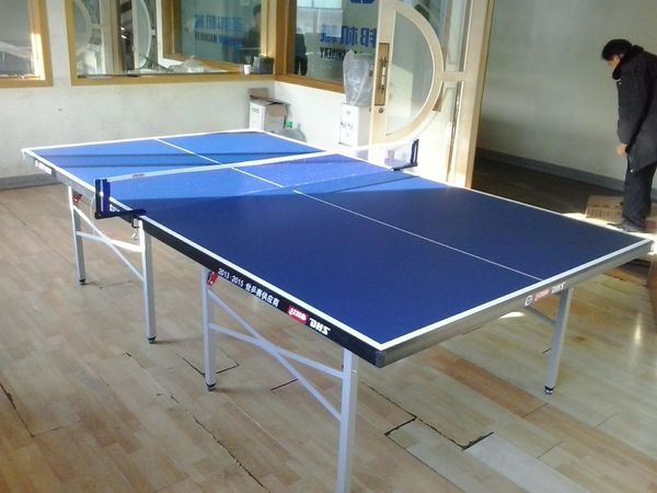 乒乓球台是乒乓球活动的老式乒乓球台器械,台面可由任何资料 (国际划定应由坚实木柴)制造,具有必定弹性,上层外面叫竞赛台面,长2.74米,宽1.525米,离地面76厘米,与程度面平行台面为暗色,无光泽,台边各有2厘米宽的白线,长的称边线,短的称端线。