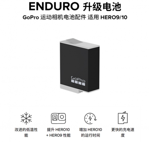 Enduro电池采用革新性技术,能够显著改善GoPro HERO10 或 HERO9在低温环境 (例如雪上运动)下的性能,同时还能显著延长GoPro在常温环境下的录制时间,高达40%。而此次升级仅需198元人民币。