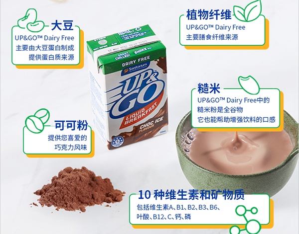 对于青少年及儿童来说,UP&GO是从小陪伴他们长大的早餐饮品。,也是澳洲妈妈们值得信赖的早餐选择。富含10种维生素及矿物质,其中钙含量超过普通纯牛奶的UP&GO,可以满足儿童及青少年成长阶段的多种营养需求。并且,UP&GO不含人造色素,采用植物基配方,饮用更安全,可以充分保障青少年儿童的健康成长。香草味和巧克力味,也非常收孩子喜爱。